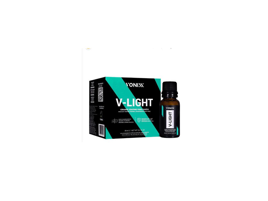 V-LIGHT PRO je produkt vyvinutý speciálně pro obnovu zoxidovaných polykarbonátových světlometů. Produkt vytváří polopružný ochranný skelný film s vysokou průhledností a odolností. Vytváří také ochranný film proti UV záření a zanechává povrch extrémně hydrofobní. Lze použít na nové i zoxidované světlomety. Zoxidované světlomety doporučujeme nejprve vyleštit. V-LIGHT PRO lze použít i k ochraně čelních skel.